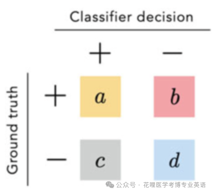 本小节中会出现医生们熟悉的诊断试验的四格表,那么在机器学习领域,这个表格称为什么呢?