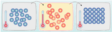 首先解释热力学上的退火过程。如图所示,首先物体处于非晶体的稳定状态。现将其加温至充分高,此时分子热运动加剧,物体的状态充满随机性——几乎可以向任何方向运动;再让其徐徐冷却——即退火,粒子趋近于能量最小,也就可能达到处于晶体的稳态。