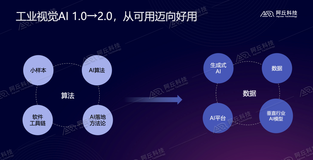 在“可用”的时代,“算法驱动”是破局的关键,小样本、AI算法、软件工具链、AI落地方法论这些成为企业开发和应用工业AI视觉的关键点。