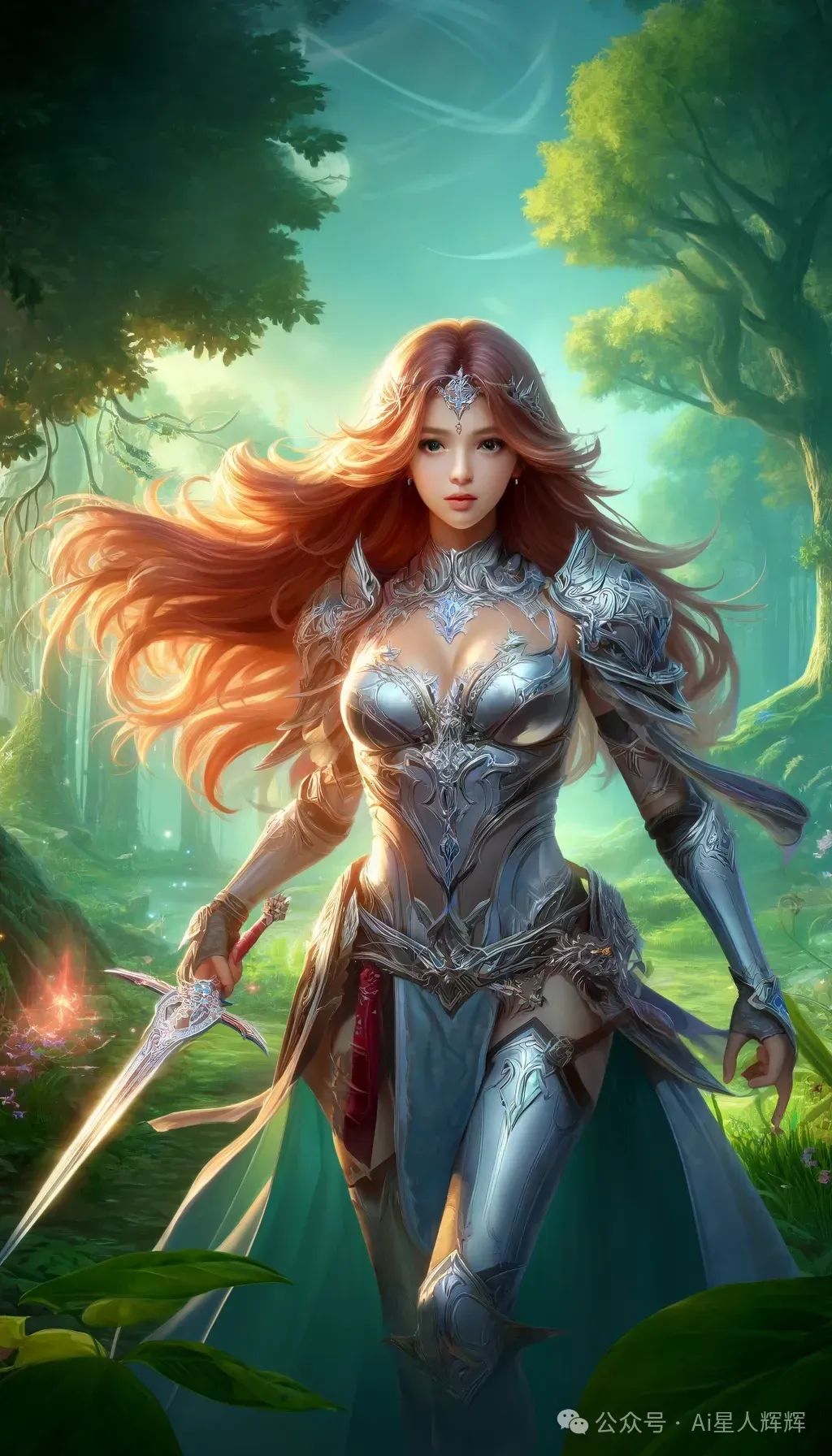你是一名专业的动漫画家。请绘制一个最高幻想女主角的场景,每生成一张后继续生成,共三次。