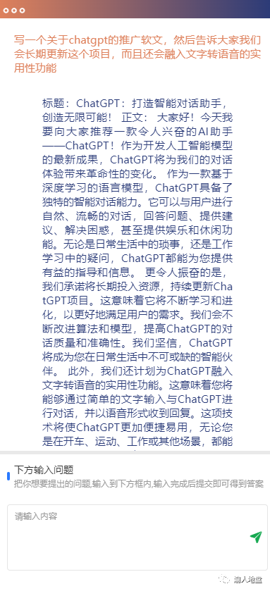 此外,我们还计划为ChatGPT融入文字转语音的实用性功能。这意味着您将能够通过简单的文字输入与ChatGPT进行对话,并以语音形式收到回复。这项技术将使ChatGPT更加便捷易用,无论您是在开车、运动、工作或其他场景,都能轻松与ChatGPT进行互动,享受智能化的便利。我们深知,智能对话助手的潜力是无限的,因此我们对ChatGPT充满信心。我们相信,ChatGPT将帮助用户更高效地解决问题,提供个性化的服务,甚至在某些情况下成为我们的良师益友。无论您是寻求实用性的指导,还是希望享受与人工智能的有趣互动,ChatGPT都将是您的最佳选择!我们期待您的加入,一同见证ChatGPT的成长与进化!