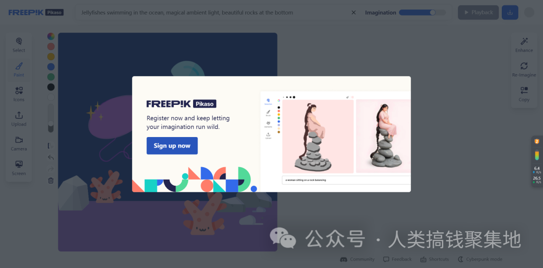 Pikaso,免费的在线实时涂鸦出图工具,借助Freepik背后庞大的图库,Pikaso的实时生成功能效果自然也不错。用户只需快速绘制草图即可创建他们能想象到的任何图像。它不仅仅是一个人工智能工具,它是你创意本质的延伸。
