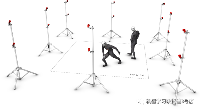 Fig 1.2 基于红外光标的方案需要在场景周围部署多个特定的红外激光摄像头,成本高昂。
