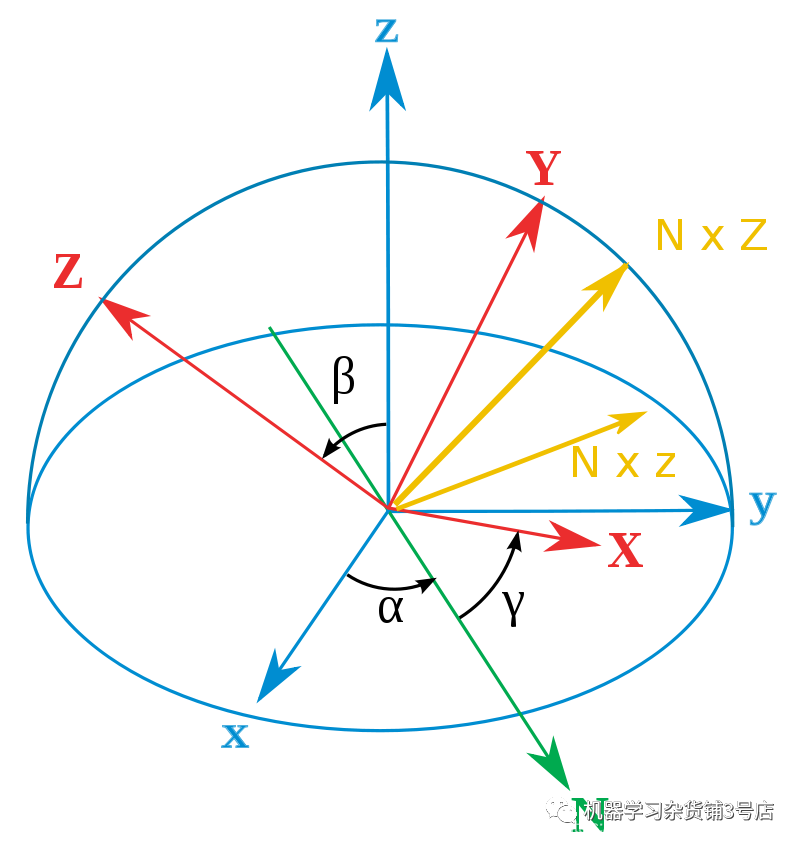 Fig 2.2 欧拉角,分别绕着XYZ轴旋转特定角度,可以实现大多数空间旋转(有时候会存在万向节的现象)。