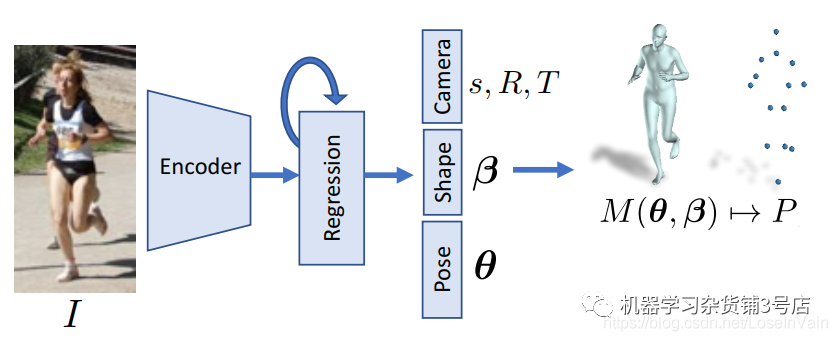 Fig 3.4 通过模型回归出人体的SMPL模型参数[19]。