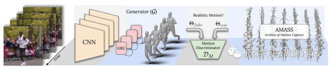 进而通过对抗损失,将人体运动先验引入了到了模型中。