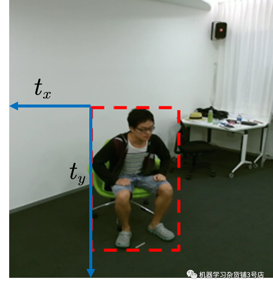 Fig 4.2 弱透视相机外参数的偏移是根据图像坐标参考系获取的,与世界坐标参考系存在一定的偏置,不解决这个问题是无法进行绝对人体3D姿态估计的。
