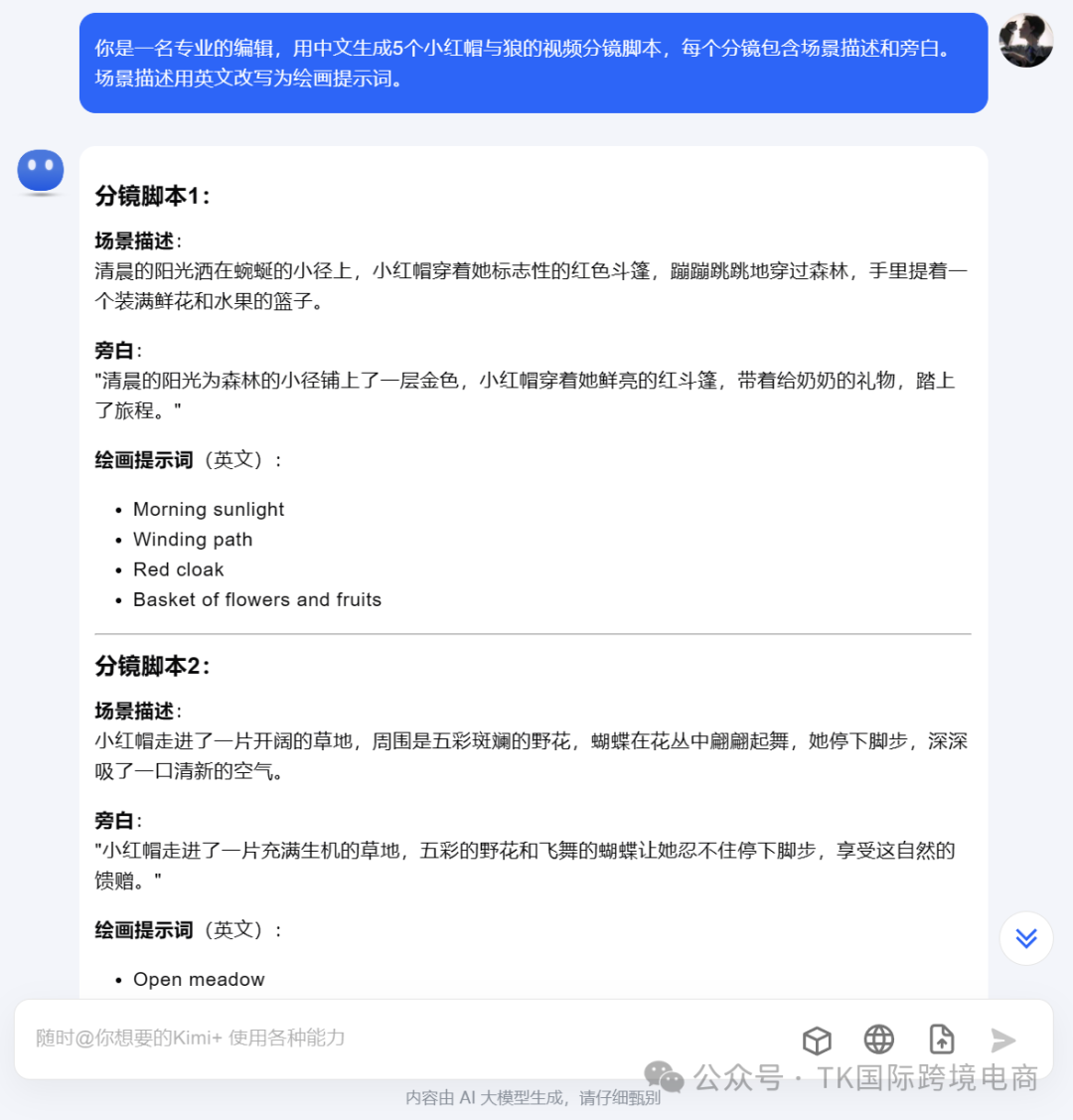 首先你要得到一个视频的分镜脚本(场景描述+旁白),然后把场景描述让AI改写为绘画提示词。以下提示词仅供参考: