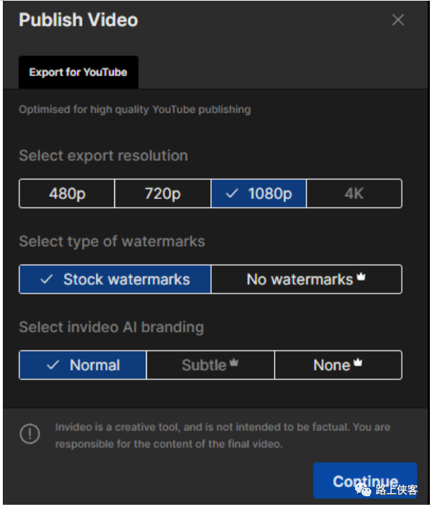 我们将视频文案和要求录入输入框,选择性别和语音之后点击Continue按钮。