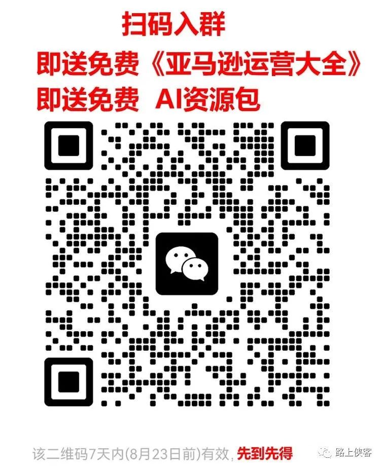 操作上有问题的小伙伴可以加入路上侠客的微信分享群进行沟通(入群后还会立即给到最新免费AI资源包和跨境资料),谢谢大家的支持。
