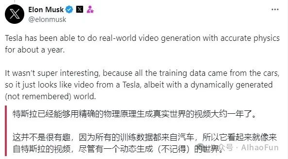 特斯拉公司在自动驾驶技术领域一直走在前沿,其CEO埃隆·马斯克最近透露,特斯拉已经能够利用精确的物理模型来生成真实世界的视频。这项技术大约一年前就已经成熟,但马斯克表示,这并不是特别有趣的事情,因为所有的训练数据都来自于特斯拉汽车,所以生成的视频看起来与普通的特斯拉视频无异,尽管它们是通过动态生成的。