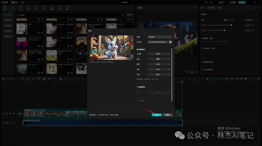 完成这些步骤后,我们的整个儿童睡前故事文章就制作完成了。最后,我们点击右上角的“导出”按钮,设置导出的参数,并点击“导出”,文章就制作完成了。