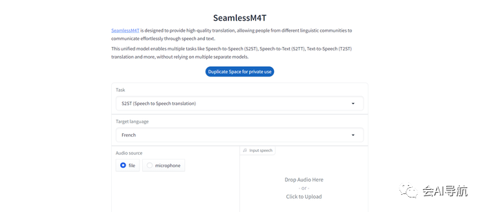 通过 Hugging Face 演示,用户可以将音频文件放入模型中进行翻译,甚至通过设备的麦克风录制新的输入。